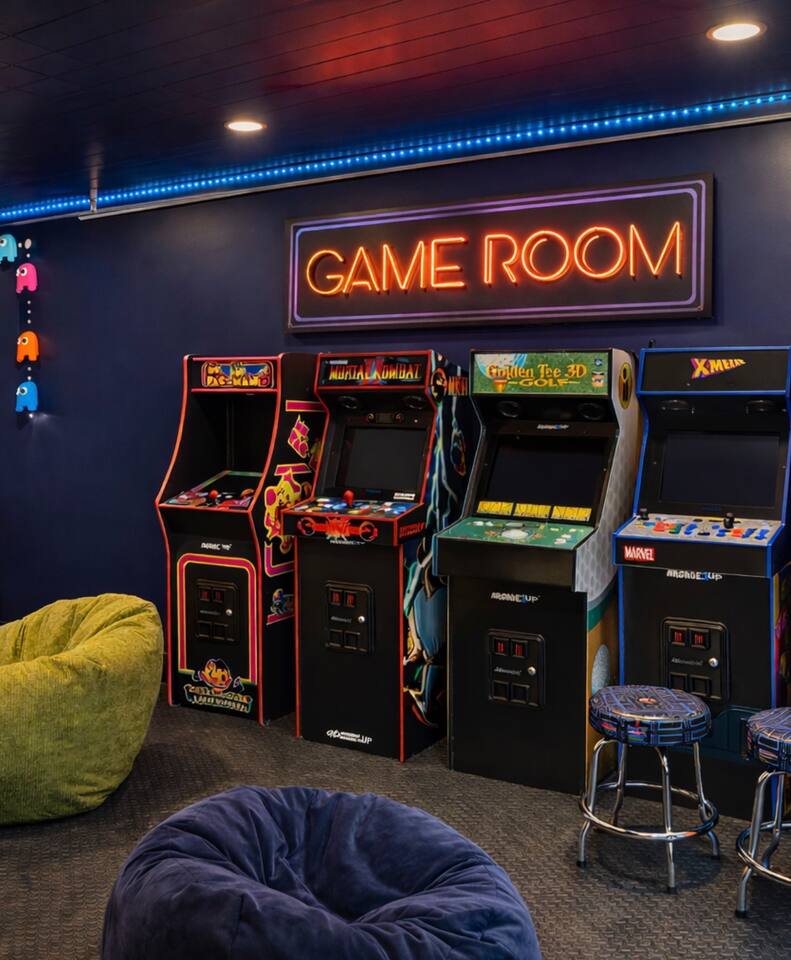 Every detail of our beautiful chic mountain cabin near Black Mountain was thoughtfully designed so you can relax, reconnect, and enjoy every moment of your stay. With inviting gathering spaces, cozy retreats, and incredible mountain views throughout, this home offers the perfect balance of comfort and charm. Main Level Step into the heart of the cabin featuring a fully equipped kitchen and dining area with seating for six, perfect for sharing meals and making memories together. The adjoining living room offers plush sectional seating, a TV for movie nights, and a queen sleeper sofa for additional guests. Gather around the stone gas log fireplace or simply relax while enjoying the beautiful mountain scenery visible from nearly every window. A cozy reading nook with a hanging swing chair invites you to slow down with a good book, while the sunroom hot tub offers a relaxing place to unwind while still enjoying the surrounding views and natural light. Upper Level The upper level features the primary suite with a luxurious king bed and private en-suite bathroom, creating a peaceful retreat at the end of the day. Two additional guest bedrooms with queen beds provide comfortable sleeping spaces for family or friends, while a full bathroom ensures convenience for everyone. Basement Level Entertainment awaits downstairs in the speakeasy-style lounge and arcade area, featuring a selection of classic games and a relaxed space to gather. Watch your favorite shows on TV, challenge friends to arcade games, or unwind at the bar seating area, making this level perfect for evening fun and entertainment. ⸻ With three levels of amenities, cozy gathering spaces, and beautiful mountain views, THE CAROLINA CABIN offers something for everyone—creating the perfect setting for an unforgettable mountain getaway. Slow mornings with coffee on the porch, afternoons in the hot tub, and evenings around the fire pit under the stars — this is mountain cabin living at its best. Ideal for couples retreats, friends trips, and unforgettable mountain getaways near downtown Black Mountain. We’re always happy to share local recommendations for restaurants, hikes, and hidden gems around Black Mountain to help you make the most of your stay.