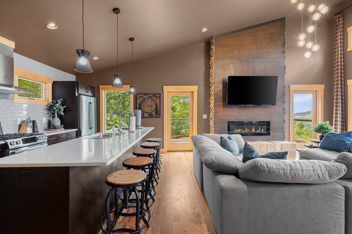 Welcome to your modern mountain retreat, just 5 minutes from downtown Black Mountain. Designed for relaxation and inspiration, this home offers breathtaking views and thoughtful details. Cozy up by the fireplace, or challenge friends in the arcade room. With a lodge-chic living room perfect for sunset views, and ultimate comfort, this is the getaway you’ve been dreaming of. Whether resetting, celebrating or relaxing, your unforgettable stay awaits!
